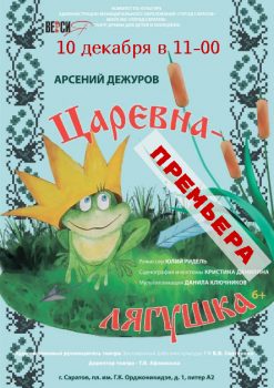 В воскресенье, 14 декабря, в 11-00, приглашаем взрослых и детей на спектакль «ЦАРЕВНА-ЛЯГУШКА» по пьесе Арсения Дежурова. Надоело Царю, что […]