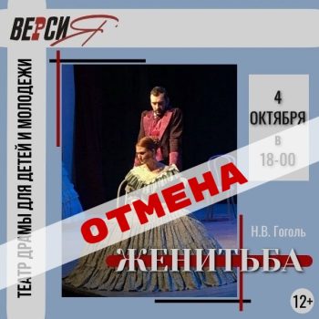 ВНИМАНИЕ! ОТМЕНА СПЕКТАКЛЯ Уважаемые зрители! В связи с болезнью артиста спектакль «Женитьба» 4 октября в 18-00 ОТМЕНЯЕТСЯ. Приносим извинения за […]