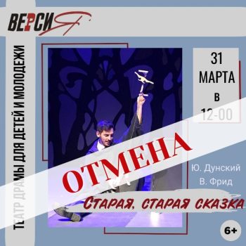 Уважаемые зрители! По техническим причинам спектакль «Старая, старая сказка…» 31 марта в 12-00 отменяется. Билеты, приобретенные в кассе театра, можно […]