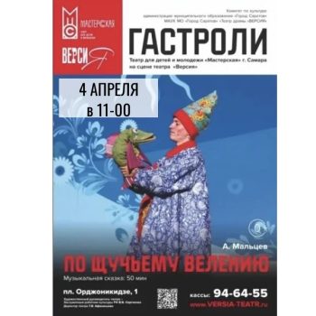 ГАСТРОЛИ САМАРСКОГО ТЕАТРА ДЛЯ ДЕТЕЙ И МОЛОДЕЖИ «МАСТЕРСКАЯ» В пятницу, 3 апреля, в 18-00, приглашаем вас на гастрольный спектакль Самарского […]