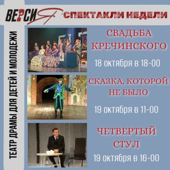 В воскресенье, 19 октября, в 11-00, приглашаем наших юных зрителей на «СКАЗКУ, КОТОРОЙ НЕ БЫЛО»! В одном волшебном королевстве нежданно-негаданно […]