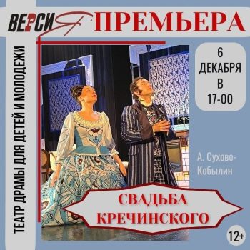В субботу, 6 декабря, в 17-00, «СВАДЬБА КРЕЧИНСКОГО» (А. Сухово-Кобылин) 12+ Руки дочери помещика Лидочки просит г-н Кречинский, блестящий представитель […]