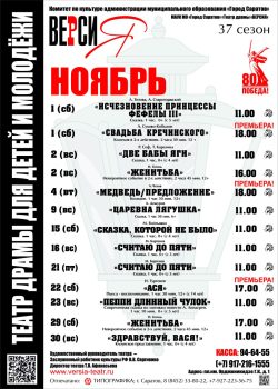Уважаемые зрители! В нашем репертуаре на ноябрь произошли изменения. Вместо спектакля «ИСЧЕЗНОВЕНИЕ ПРИНЦЕССЫ ФЕФЕЛЫ III» 1 ноября будет показан спектакль […]